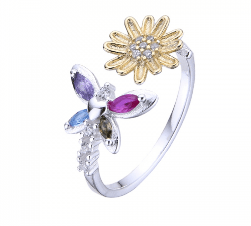 ANILLO PLATA MARIPOSA CON ZIRCONES Y MARGARITA. PESO APROX. 2.11 GRS.