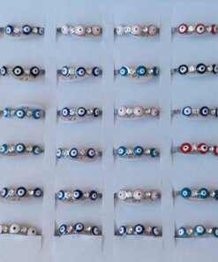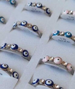 ANILLOS DE ACERO SIN FIN CON OJITO TURCO ESMALTADO MULTICOLOR Y STRASS INTERMEDIOS X 36 UNIDADES. SURTIDOS EN MEDIDAS. (MEDIDAS DEL 16 AL 20)
