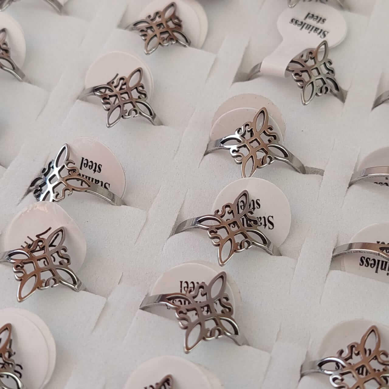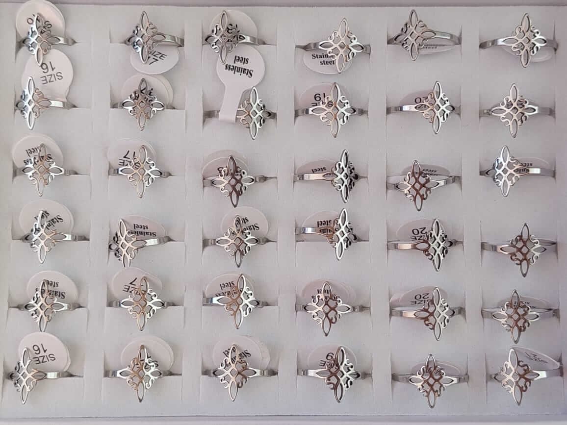ANILLOS FIGURA CALADA DE ACERO (NUDO DE BRUJAS) X 36 UNIDADES SURTIDOS EN MEDIDAS. MEDIDA DEL 16 AL 21.