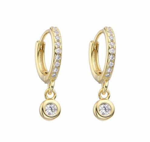 ARO ARGOLLA DE PLATA HUGGIES BAÑADO EN ORO 10 MM CON ZIRCONES Y DIJE PUNTO DE LUZ. PESO APROX 1.28 GRS.