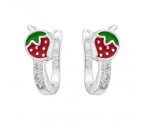 ARO PLATA HUGGIES 10 MM CON ZIRCONES Y FRUTILLA. PESO APROX 2.50 GRS.
