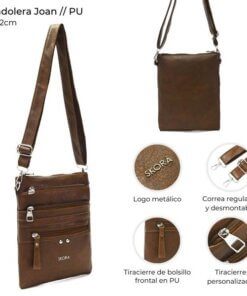 Bandolera Joan tres cierres, bolsillo con cierre 25x22cm x1u