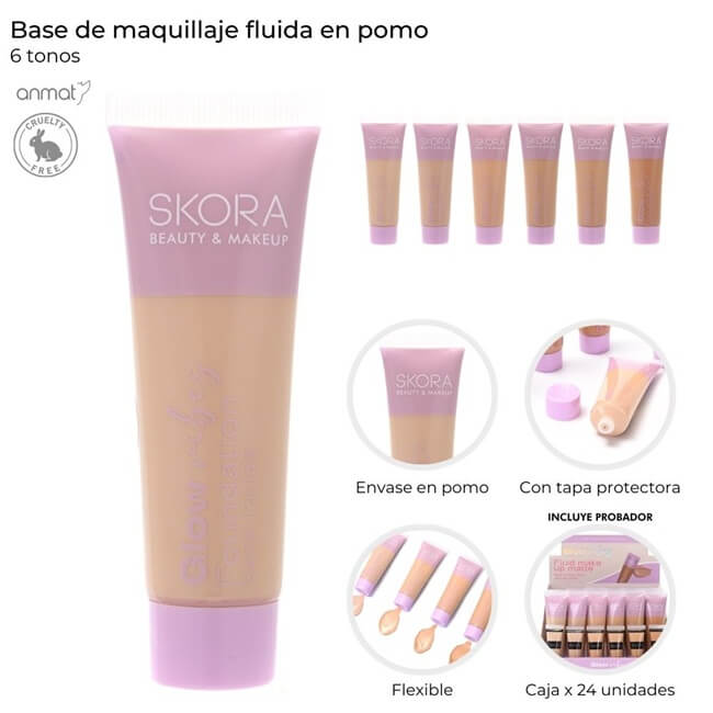 Base de maquillaje fluida en pomo (pack x 6 unidades surtidas)