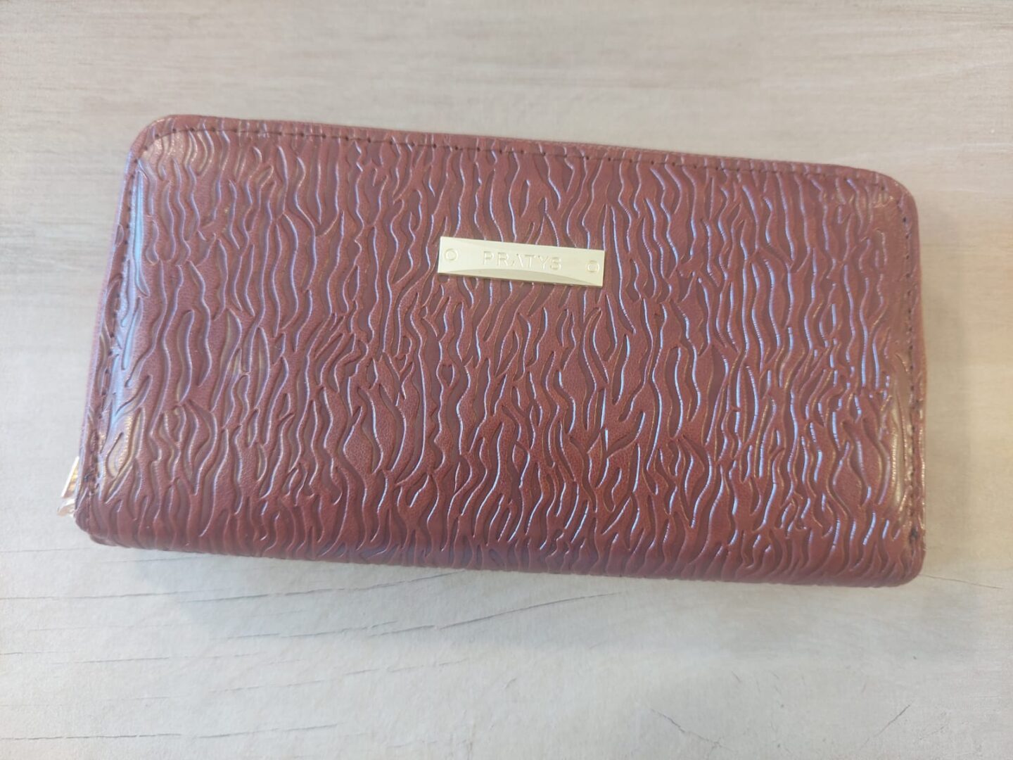 BILLETERA FICHERO ACEBRADA EN RELIEVE COLOR MARRON 10 X 19 CM