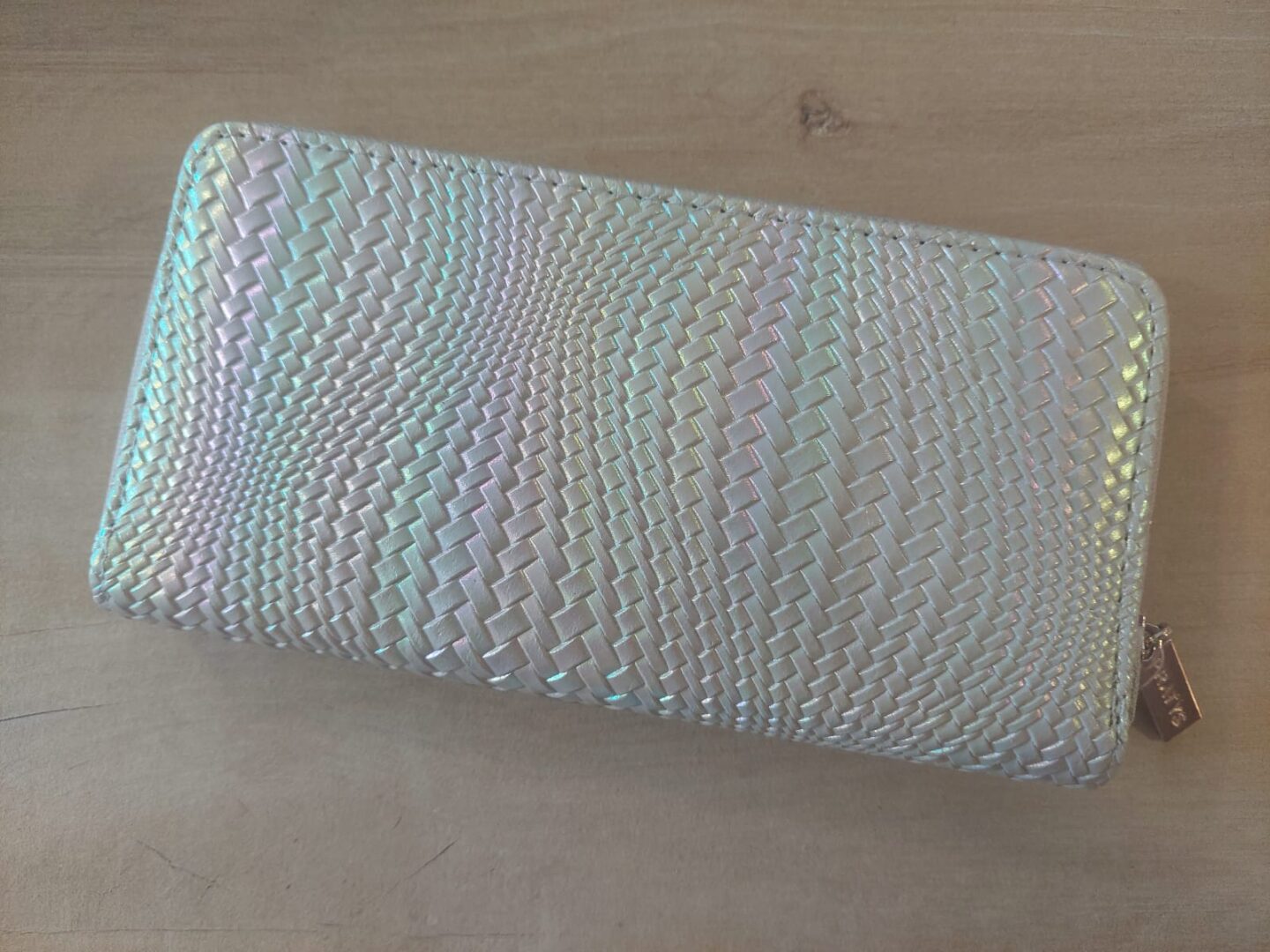 BILLETERA FICHERO DAMERO TEXTURA TELAR ONDAS METALIZADA TORNASOL