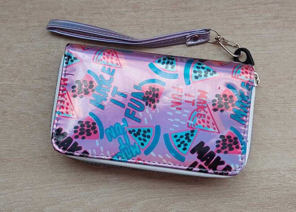 BILLETERA FICHERO MEDIANO METALIZADA ESTAMPADA DOBLE CIERRE 16 X 10 CM