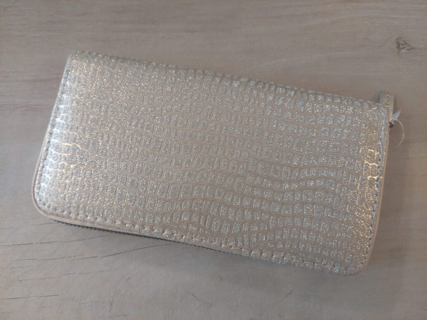 BILLETERA FICHERO REPTIL BRILLOS COLOR DORADA 10 X 19 CM