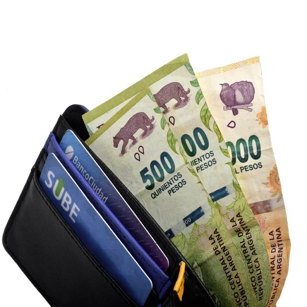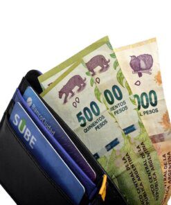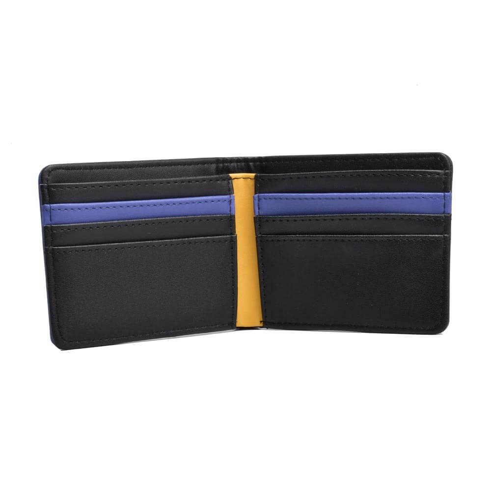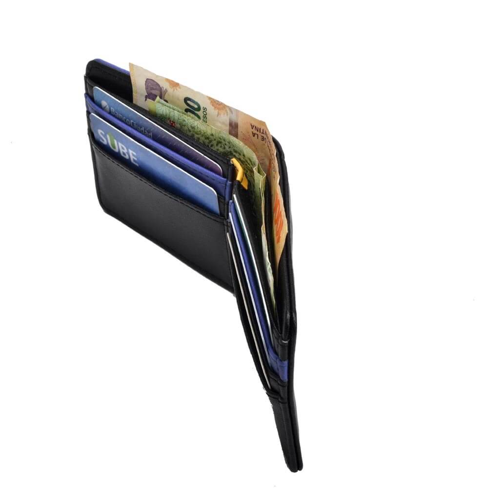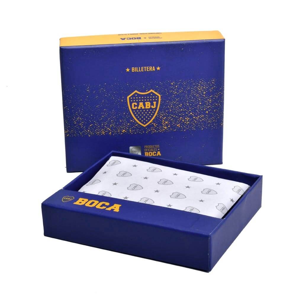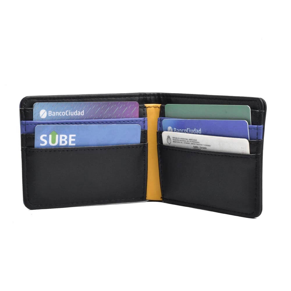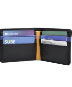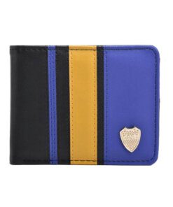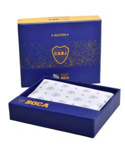 Billetera hombre boca P.U. con rayas verticales y escudo en caja x1u