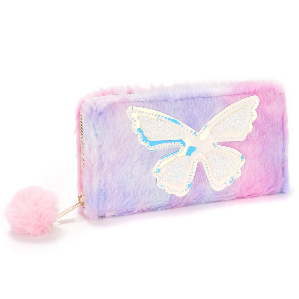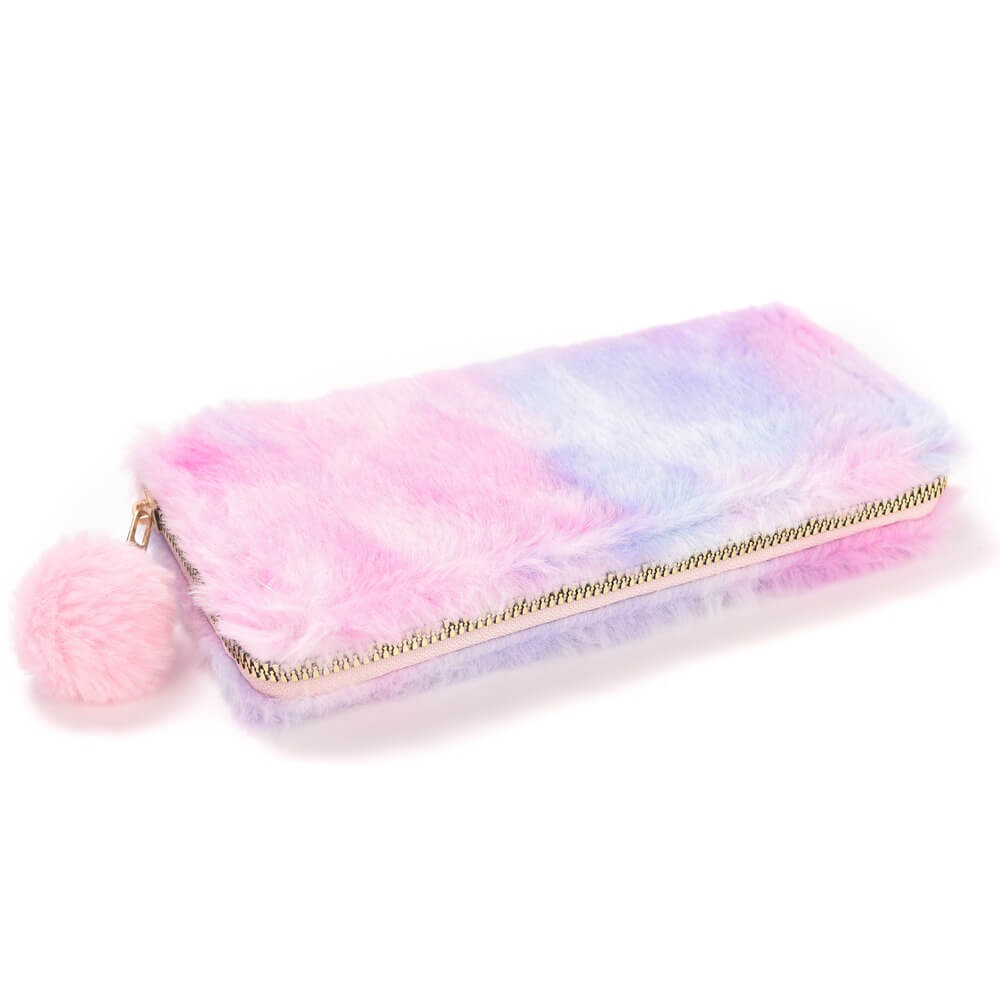 Billetera Think Happy peluche con pompom 19x9cm x1u