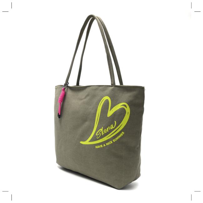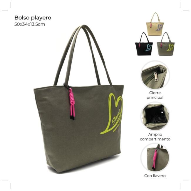 Bolso playero estampa corazon y llavero 50x34x13.5cm x1u