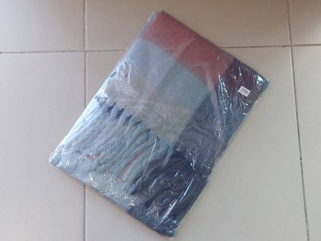 BUFANDON A CUADROS AZUL, AQUA Y CELESTE 40 X 190 CM