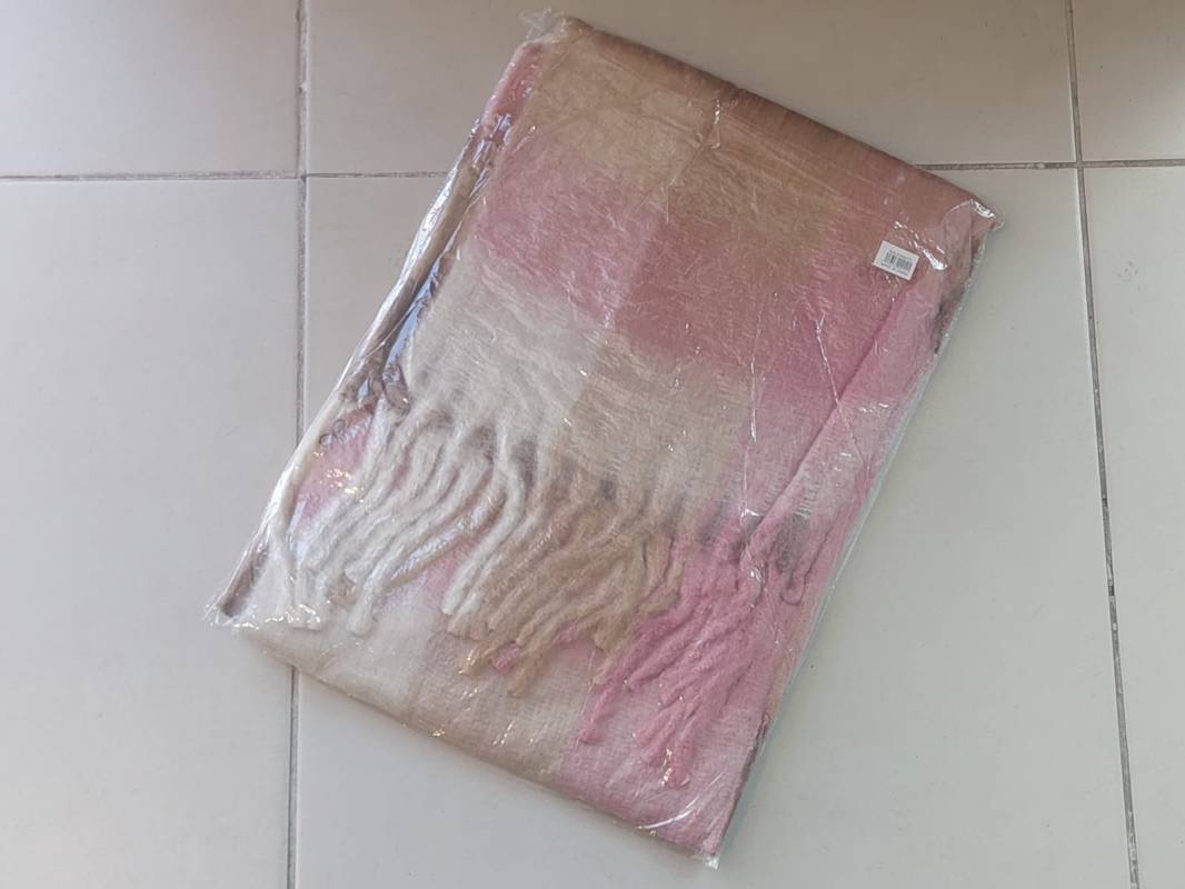 BUFANDON A CUADROS BEIGE, ROSA Y MARFIL 40 X 190 CM