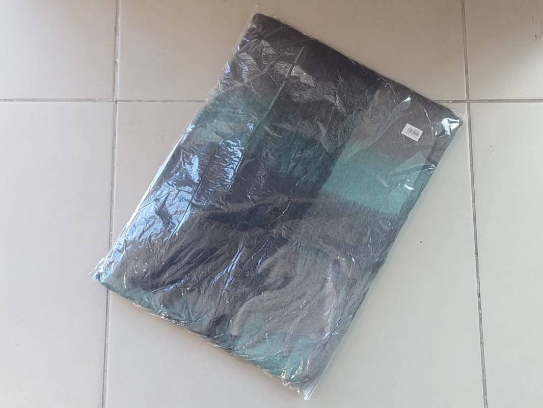BUFANDON A CUADROS NEGRO, GRIS Y AQUA 40 X 190 CM