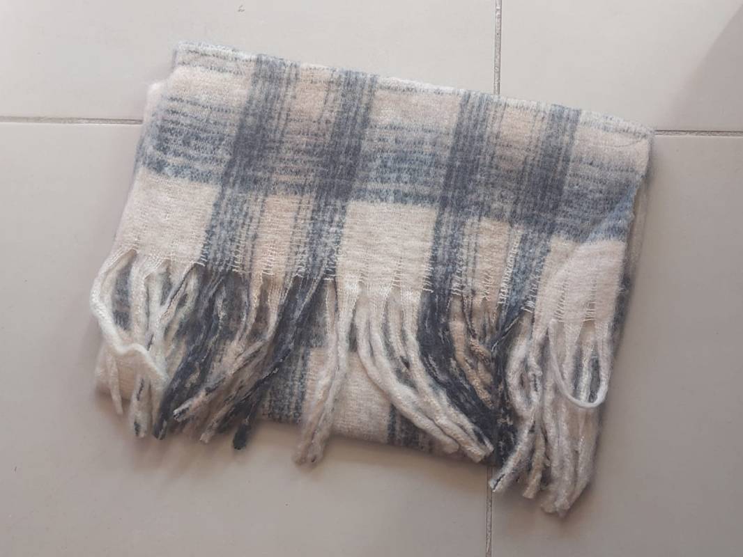 BUFANDON ESCOCES MARFIL CON LINEAS AZULES 50 X 190 CM