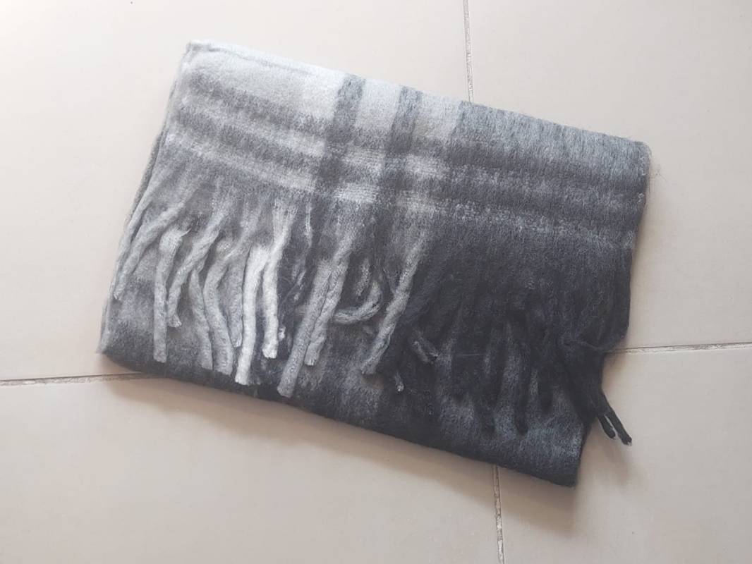 BUFANDON ESCOCES TONOS NEGRO Y GRISES CON FLECOS 55 X 200 CM