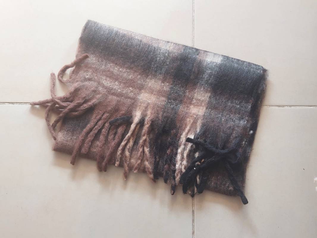 BUFANDON ESCOCES TONOS NEGRO Y MARRONES CON FLECOS 55 X 200 CM