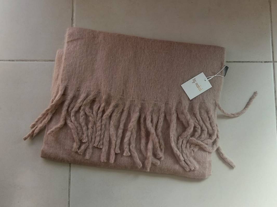 BUFANDON LISO BEIGE CON FLECOS 55 X 200 CM