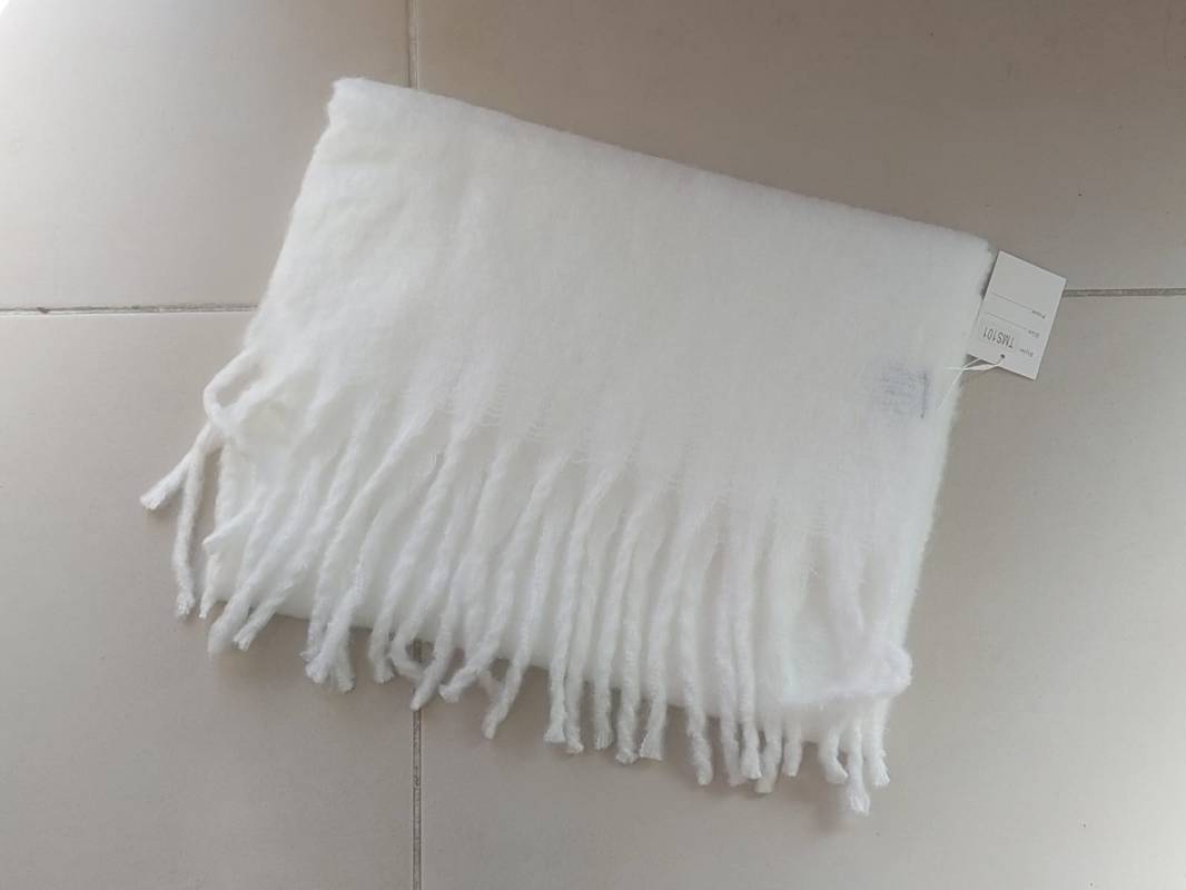 BUFANDON LISO MARFIL CON FLECOS 55 X 200 CM