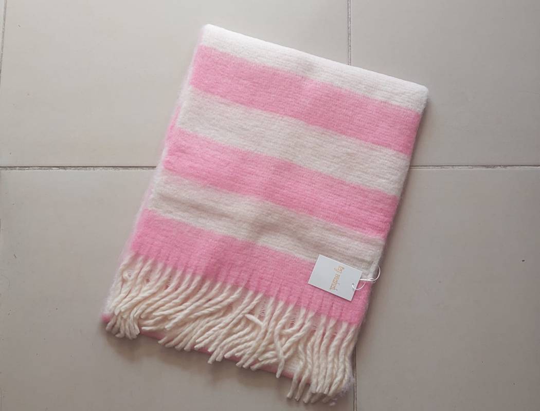 BUFANDON RAYADO MARFIL Y ROSA CON FLECOS. TAMAÑO 45 X 200 CM