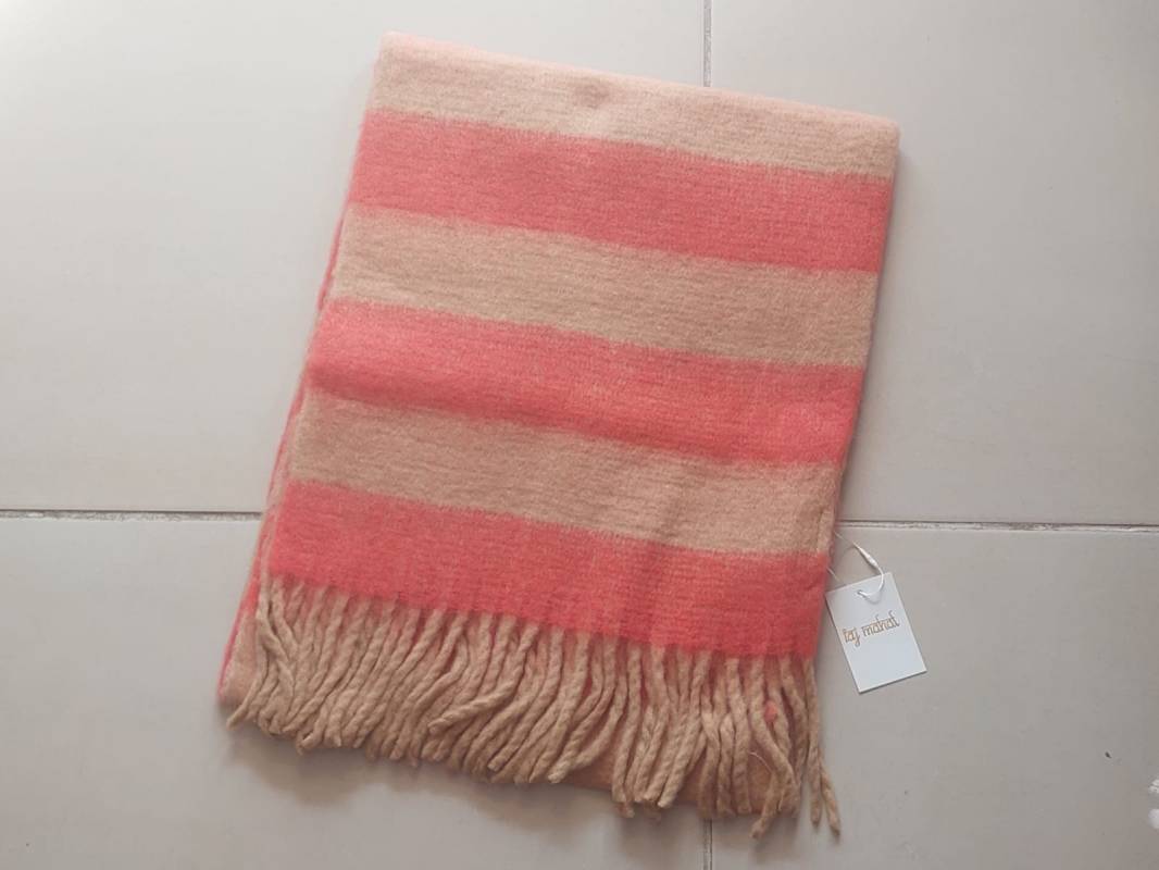 BUFANDON RAYADO NARANJA Y BEIGE CON FLECOS. TAMAÑO 45 X 200 CM