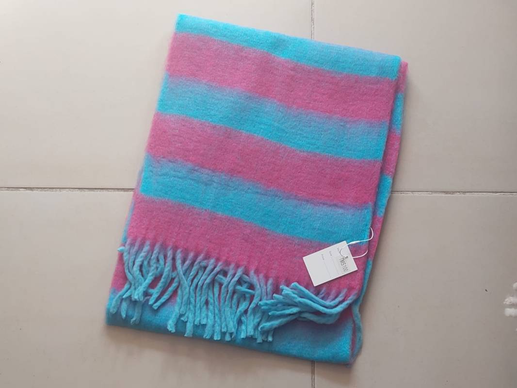 BUFANDON RAYADO ROSA Y TURQUESA CON FLECOS. TAMAÑO 45 X 200 CM