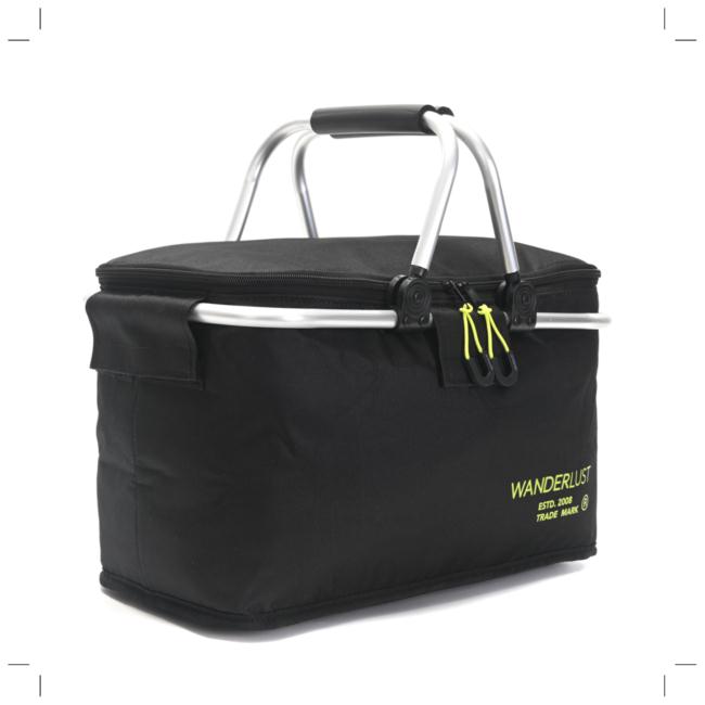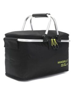 Canasto WANDERLUST 43x23x23 cm con doble asa y estructura de aluminio forreria isotermica x1u