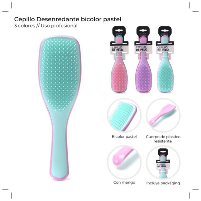 Cepillo desenredante bicolor pastel x1u