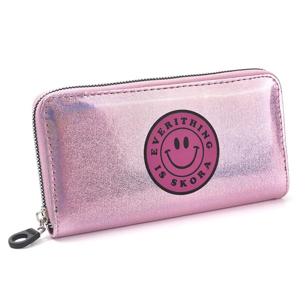 BILLETERA FICHERO Candy holograma Smile 19x9cm x1u color rosa