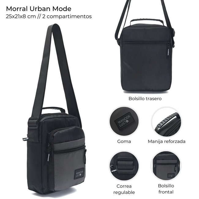 Morral Urban Mode 25x21x8 cm con manija de plastico x1u