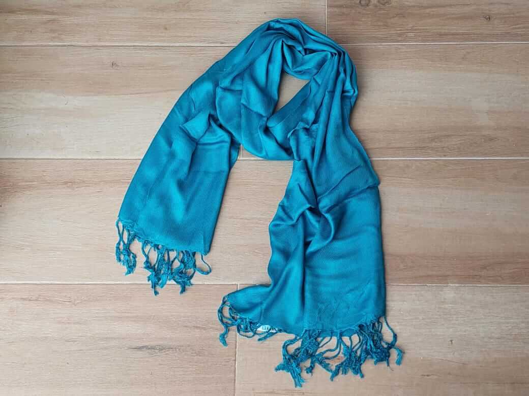 PASHMINA INDU LISA DE VISCOSA CON FLECOS COLOR PETROLEO. 70 X 180 CM.