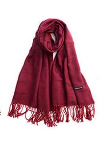 BUFANDA LISA REVERSIBLE BORDO Y ROJA, CON FLECOS. TAMAÑO 60. x 180 CM