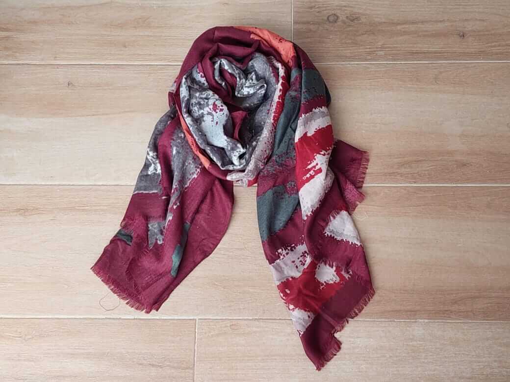 PASHMINA LINEA PESADA DESFLECADA PINCELADAS BASE BORDO. 90 X 190 CM.