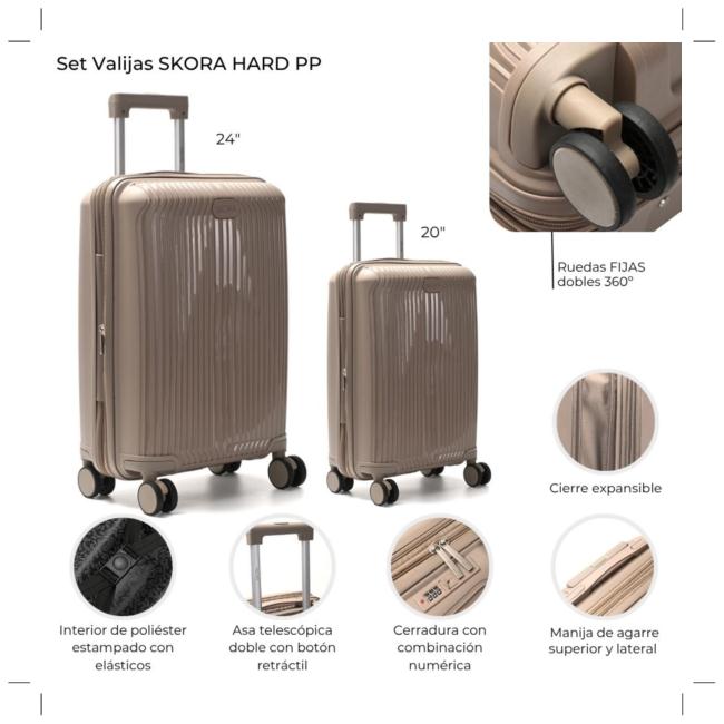 Set Valijas SKORA HARD PP Vison 20 y 24 pulg ,doble rueda fija, expandible y cerradura de combinacion x1u