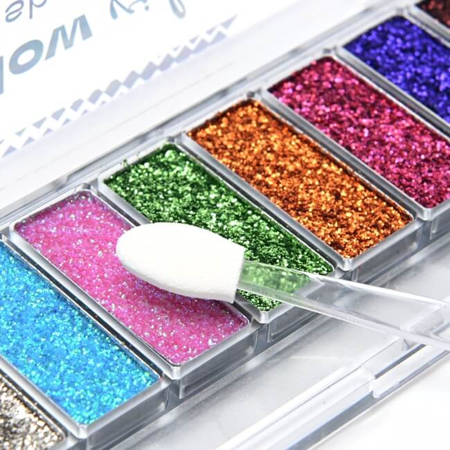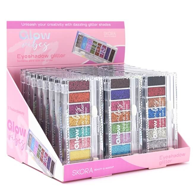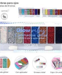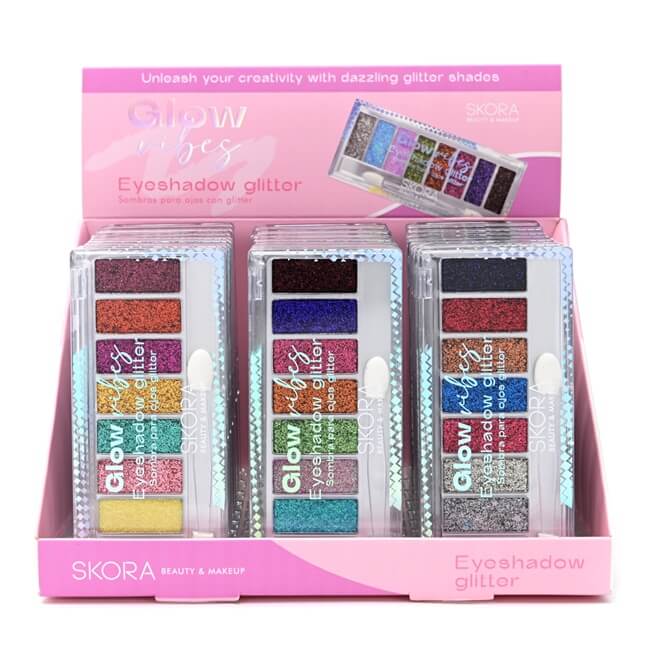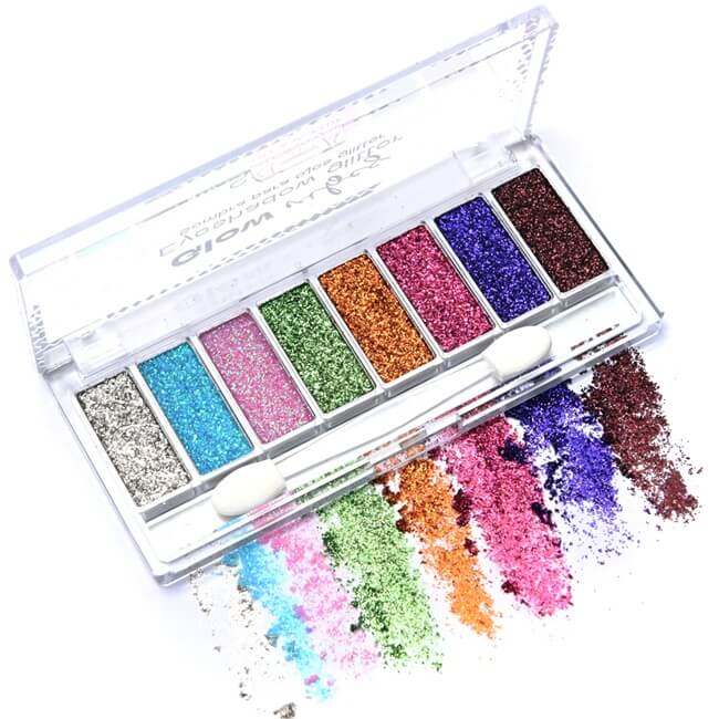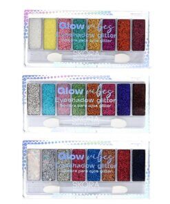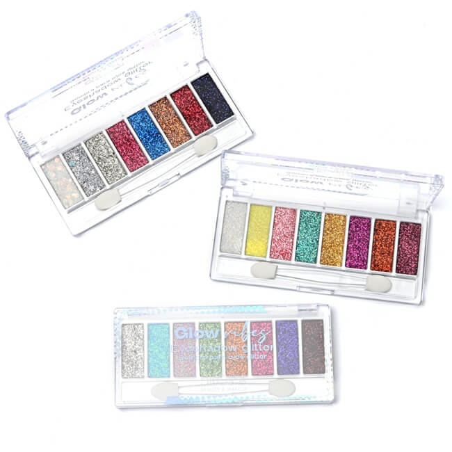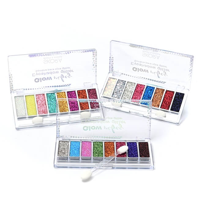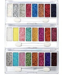 Sombras para ojos con glitter x 8 tonos con aplicador (pack de 3 unidades surtidas)