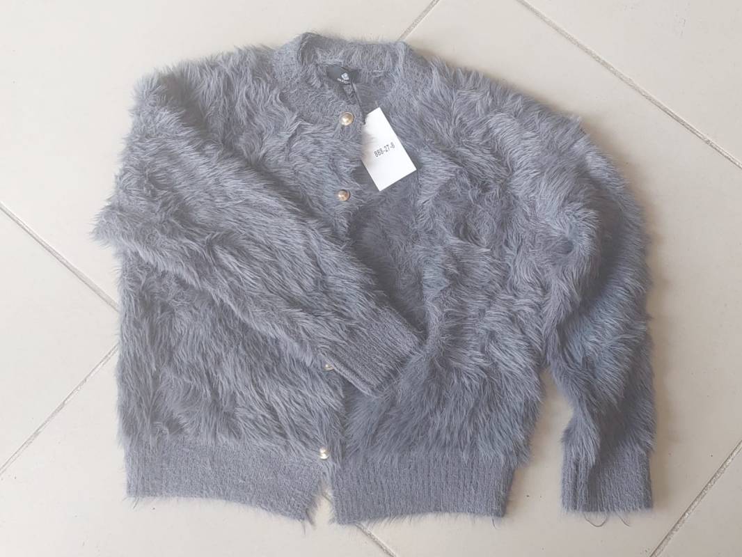 SWEATER CARDIGAN SÍMIL PIEL COLOR GRIS CON BOTÓN DORADO. TALLE ÚNICO