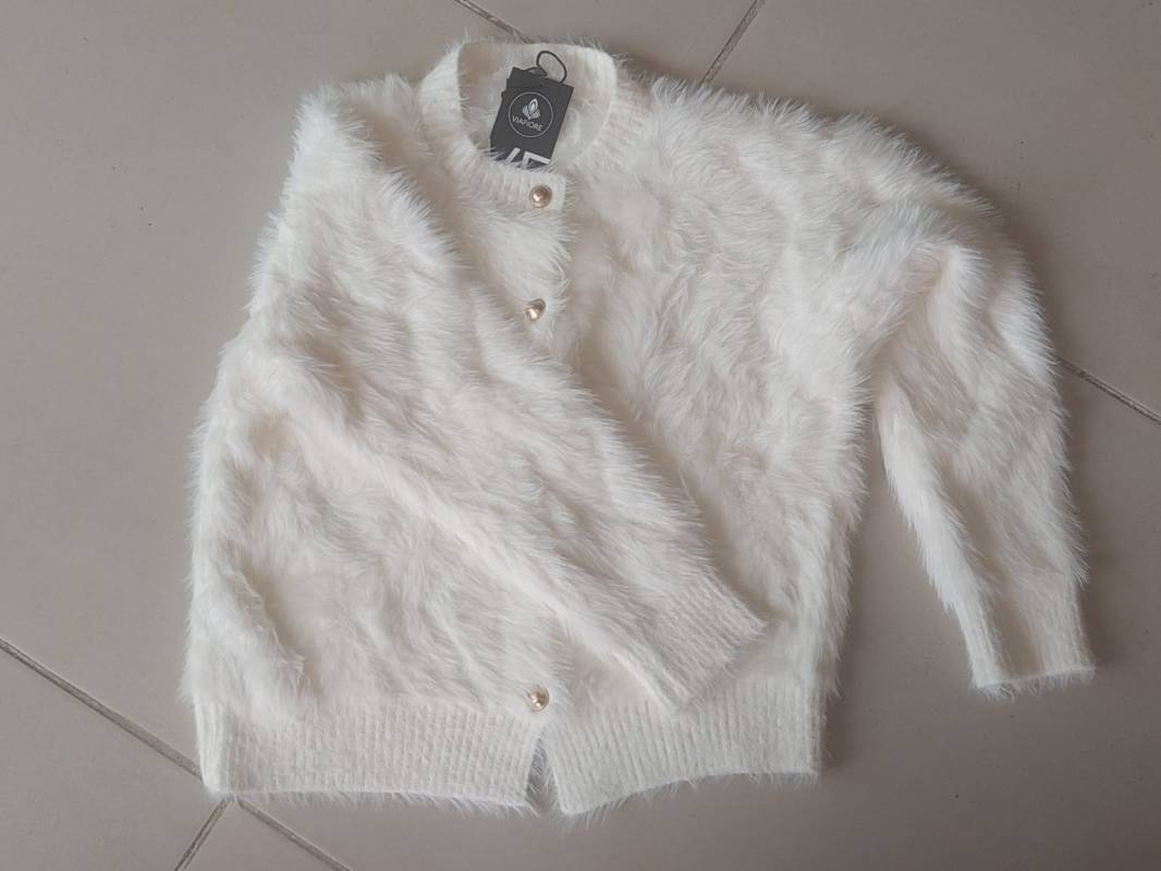 SWEATER CARDIGAN SÍMIL PIEL COLOR MARFIL CON BOTÓN DORADO. TALLE ÚNICO