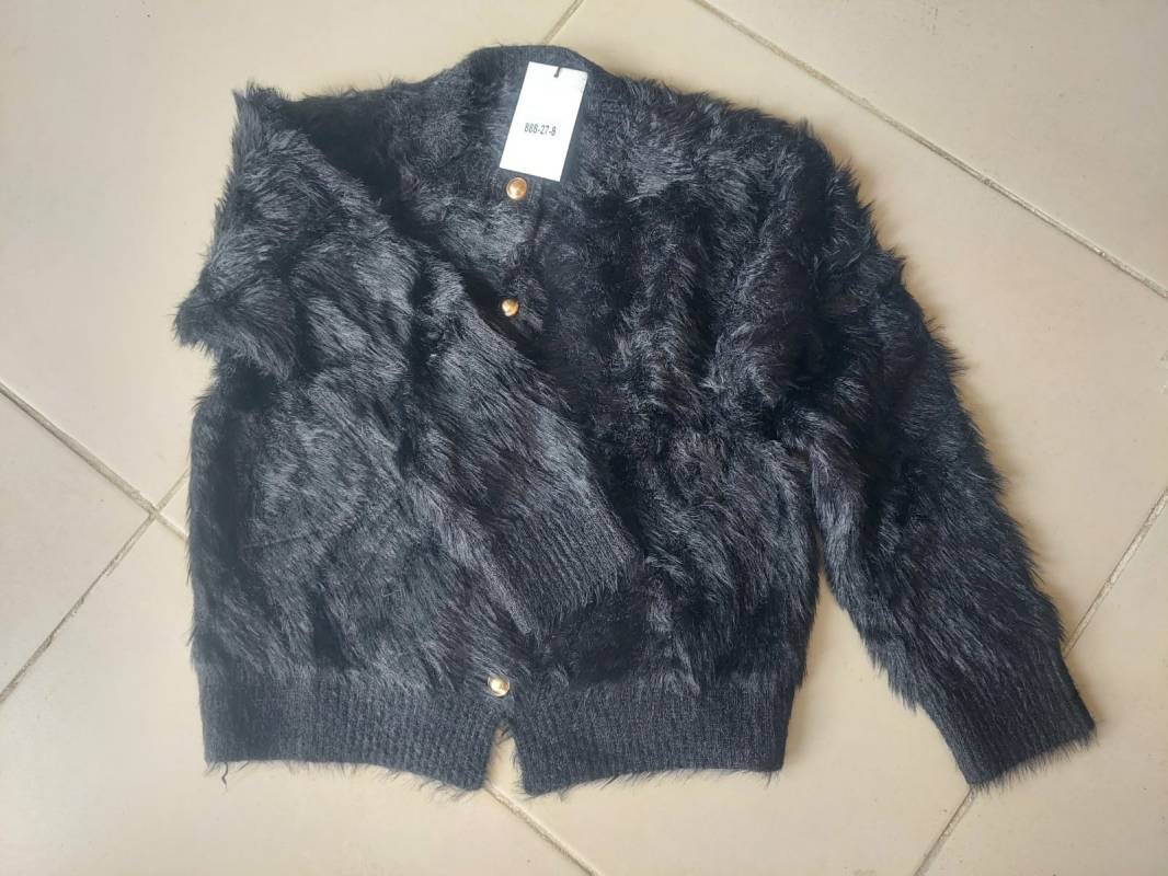SWEATER CARDIGAN SÍMIL PIEL COLOR NEGRO CON BOTÓN DORADO. TALLE ÚNICO